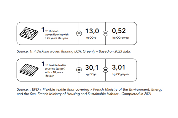 .Con la publicación de esta ficha ACV, Dickson hace accesible la huella de carbono de su producto y apoya a los profesionales de la construcción en su transición ecológica. Este enfoque se inscribe en nuestra voluntad de crear suelos tejidos eficientes, estéticos y responsables.