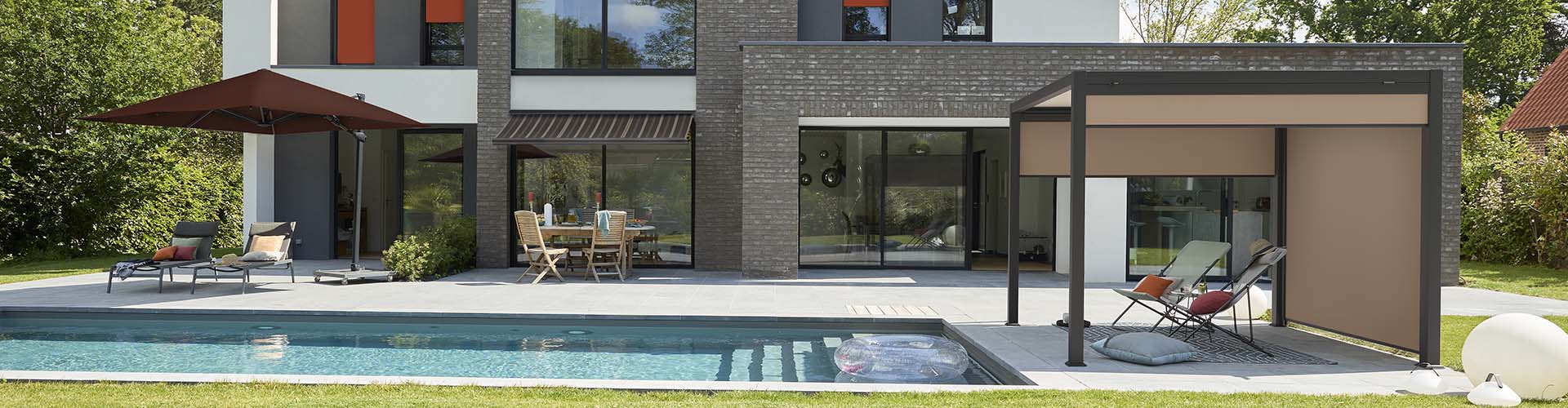 Possibilité d'assortir des toiles de store verticales ou des rideaux pour protéger également les côtés